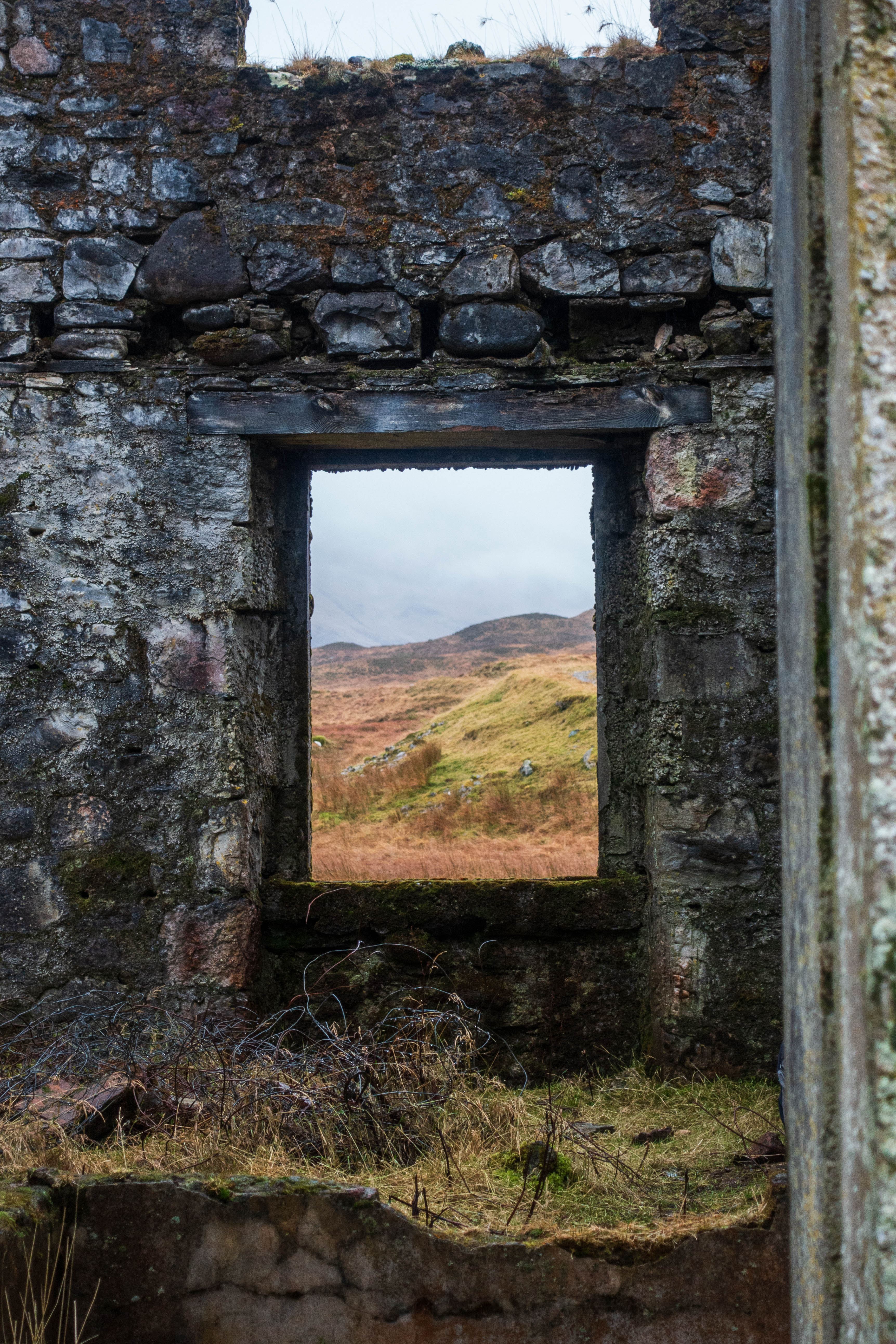 We had a sandwich in the interior, if only to get some shelter from the wind. The only sound was the movement of the wind and the constant babble of the Abhainn Rath (the river) passing outside. I noticed when I leaned down to get something out of my rucksack that the river sounds echoed in the window gap. I stood up and it changed again. Pretty strange echo effect, but that sound of the river is so close and it never goes away. I imagine the people that once lived here would have eventually found comfort in it, and it would have felt like home.